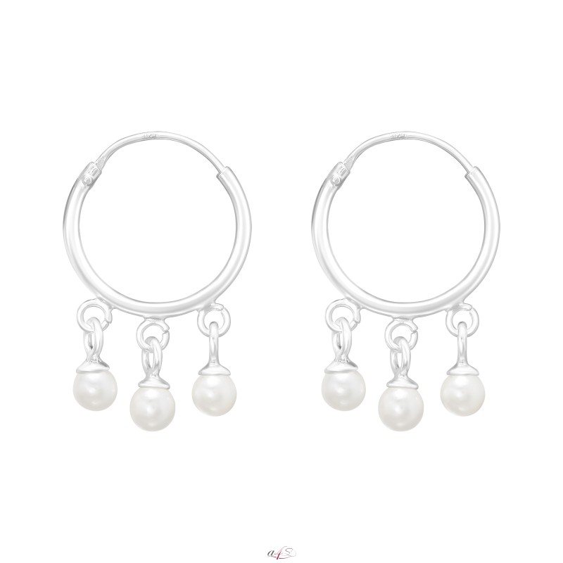 Hängende synthetische Perlen - 925er Silber Creolen Ohrringe