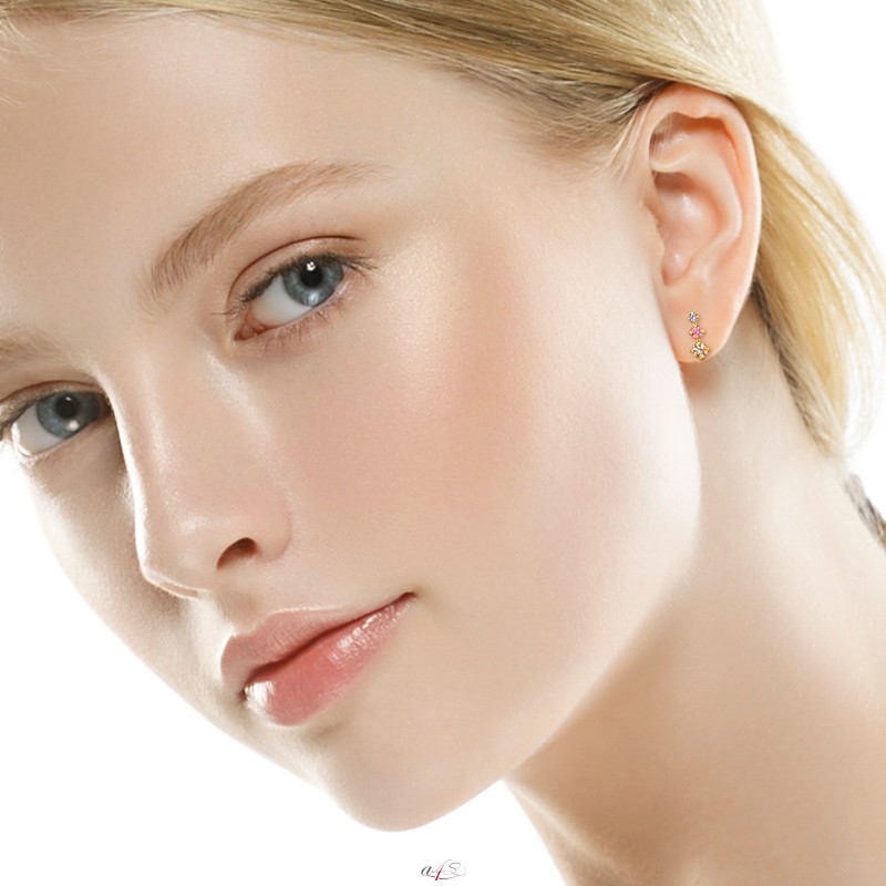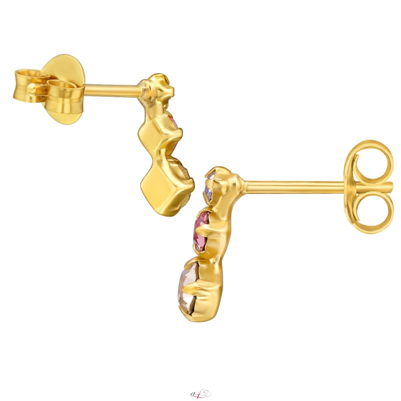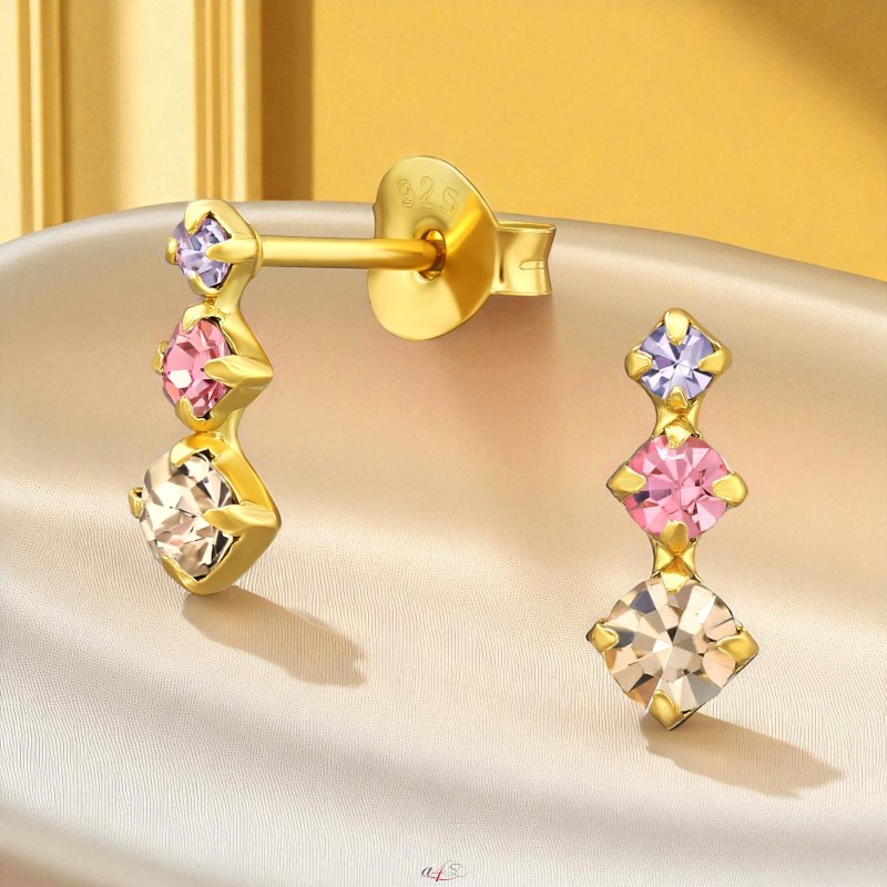 Dreifarbige Kristalle, vergoldet, Ohrstecker, 925er Sterlingsilber + 24 Karat vergoldet, Großhandel Schmuck, Eshop