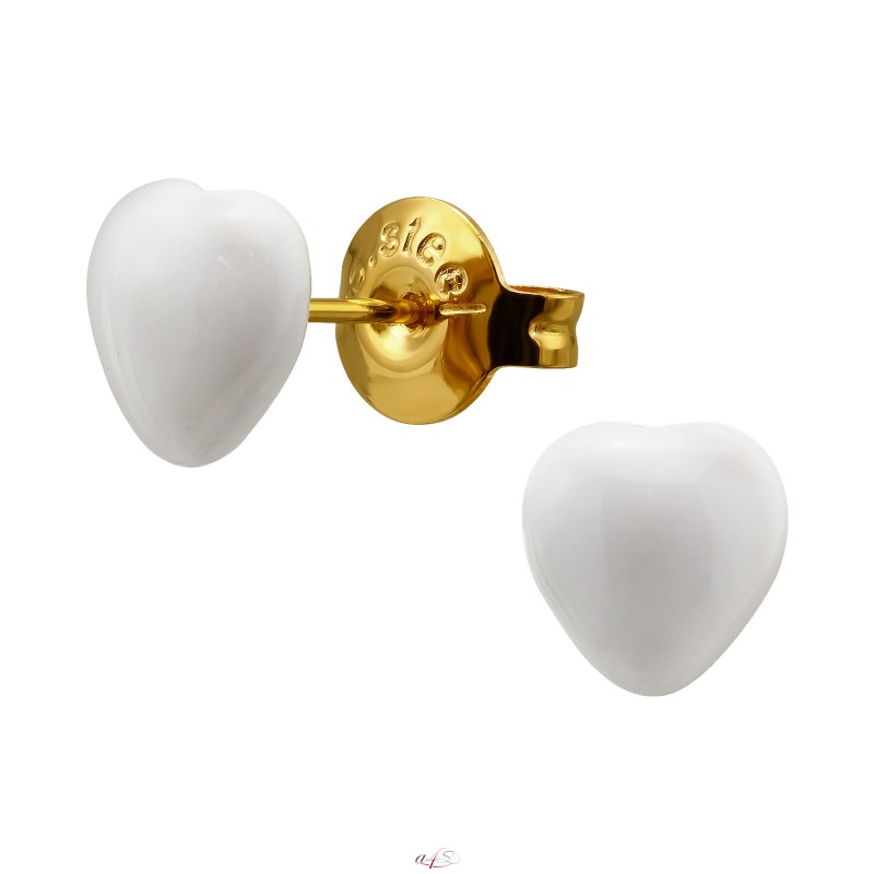 3D White Heart, Gold Plated, Ear Studs, 316L Surgical Grade Stainless Steel + Ip/pvd Gold Plated, Wholesale, Jewelry Eshop