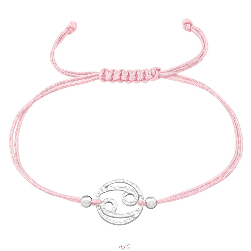 Cancer Zodiac Sign - 925 Sterling Silver + Nylon Cord Bracelets with cords
