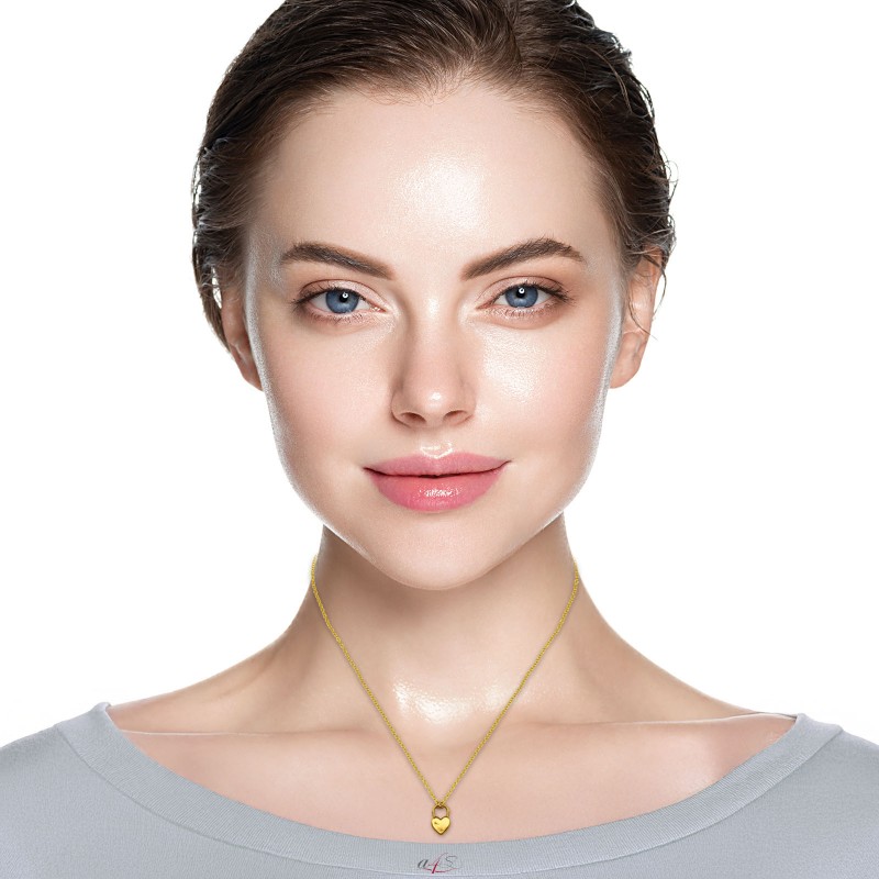 Golden Heart Lock, Necklace Without Stones, 925 Sterling Silver + 24K Gold Plated, Wholesale Jewellery, Eshop