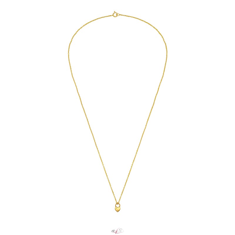 Golden Heart Lock - 925 Sterling Silver Necklace Without Stones