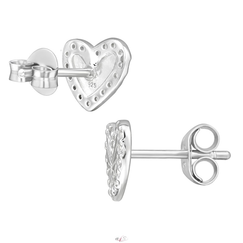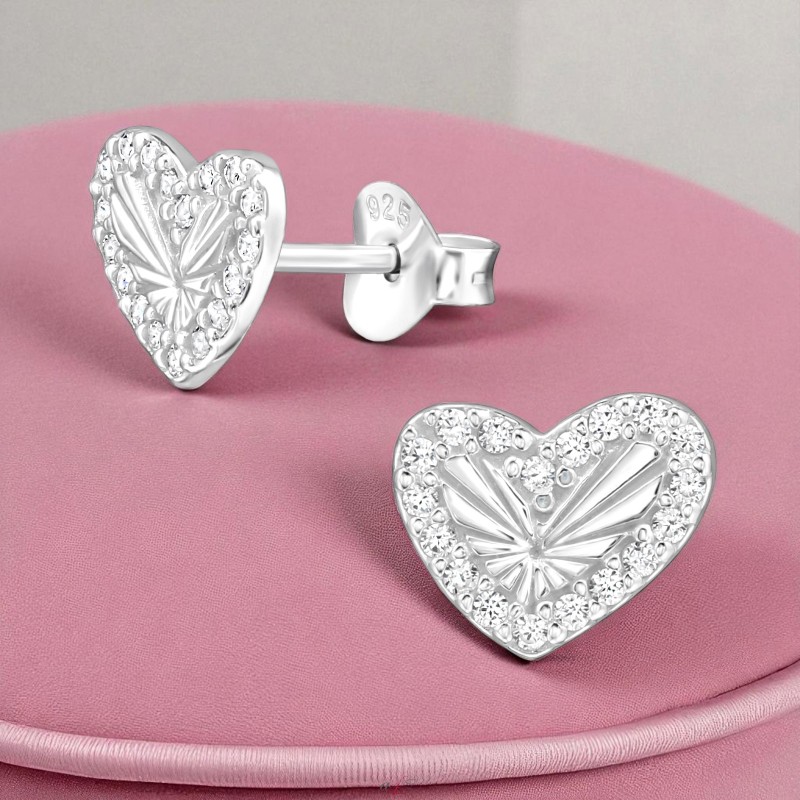 Irregular Shaped Heartwith Zirconia, Ear Studs, 925 Sterling Silver + Zirconia, Wholesale Jewellery, Eshop