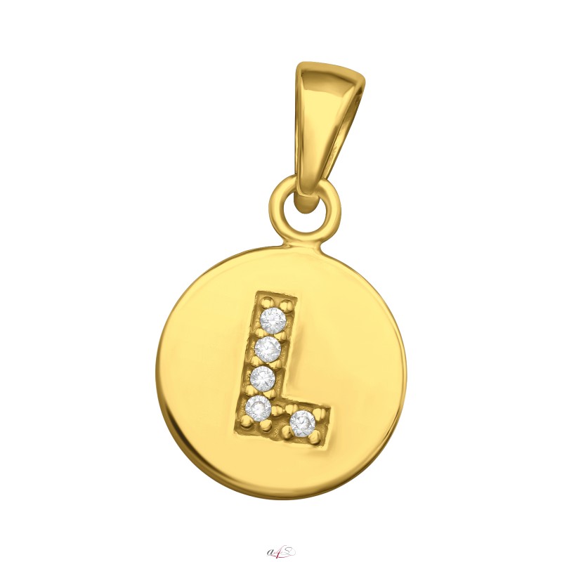 Letter L Pendants with Zirconia stones, 925 Sterling Silver, 24K Gold Plated + E-Coat, jewellery wholesale e-shop