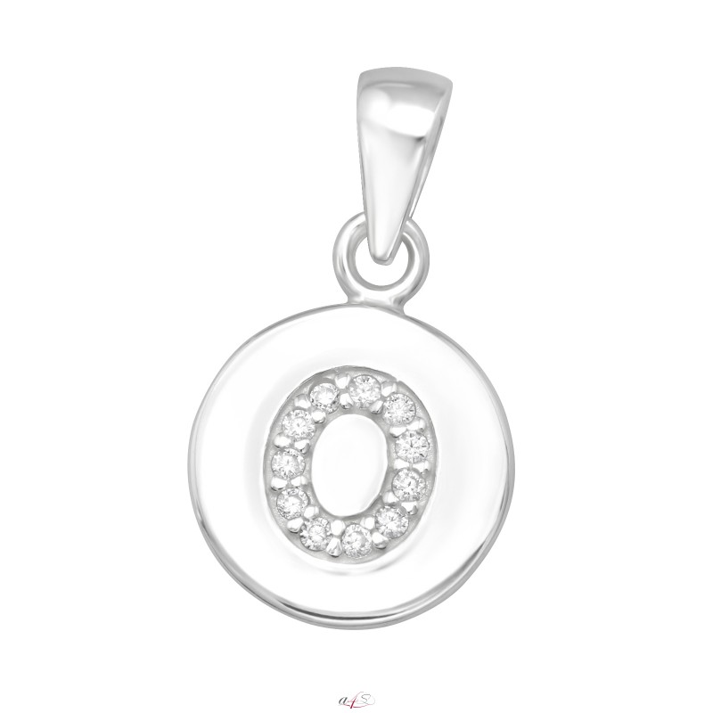 Letter O Pendant with Zirconia stones, 925 Sterling Silver, 999 Silver Plated + E-Coat, jewellery wholesale e-shop