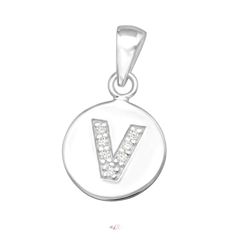 Letter V with Zirconia - 925 Sterling Silver Pendants With Zirconia Stones