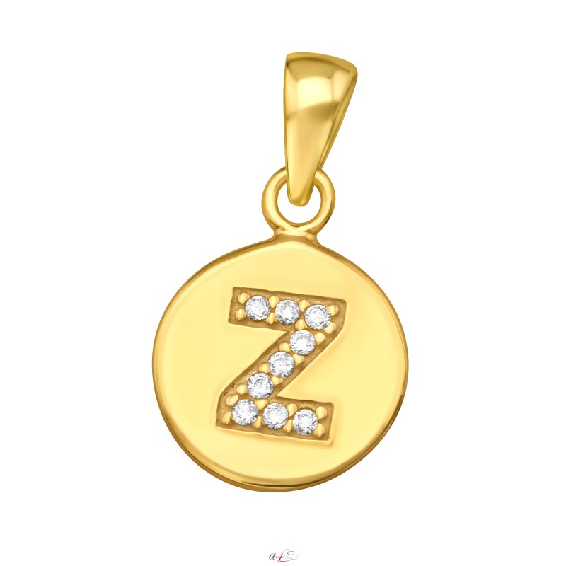 Letter Z Pendant with Zirconia stones, 925 Sterling Silver, 24K Gold Plated + E-Coat, jewellery wholesale e-shop