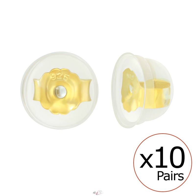 Lock or Butterfly for Ear Studs made from Silver with gold plating and the whole piece is silicone coated for a more confortable with behind the ears