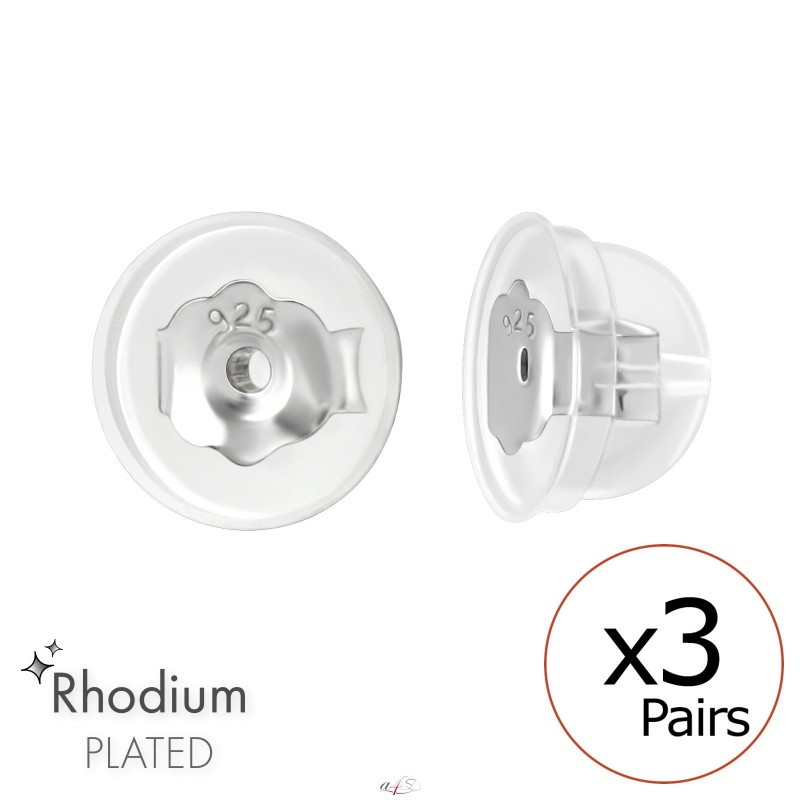 Silicone Coated Rhodium Butterfly Backs - 925 Sterling Silver Silver jewelry accessories A4S45028