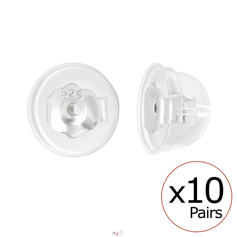 Silicone Coated Silver Butterfly Backs - Silicon + 925 Sterling Silver Basic Ear Studs A4S41872