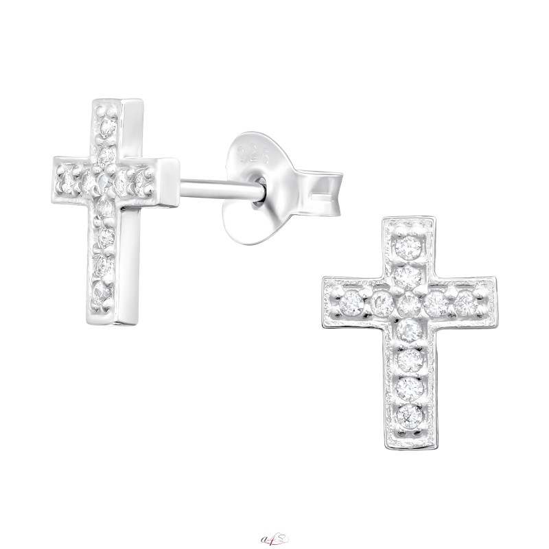 Cross - 925 Sterling Silver Ear Studs with Zirconia stones A4S41301