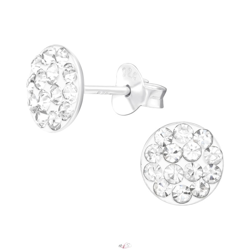 Kerek Fehér Kristályok - 925 Ezüst Fülbevalók Kristállyal & Cirkóniával A4S4761